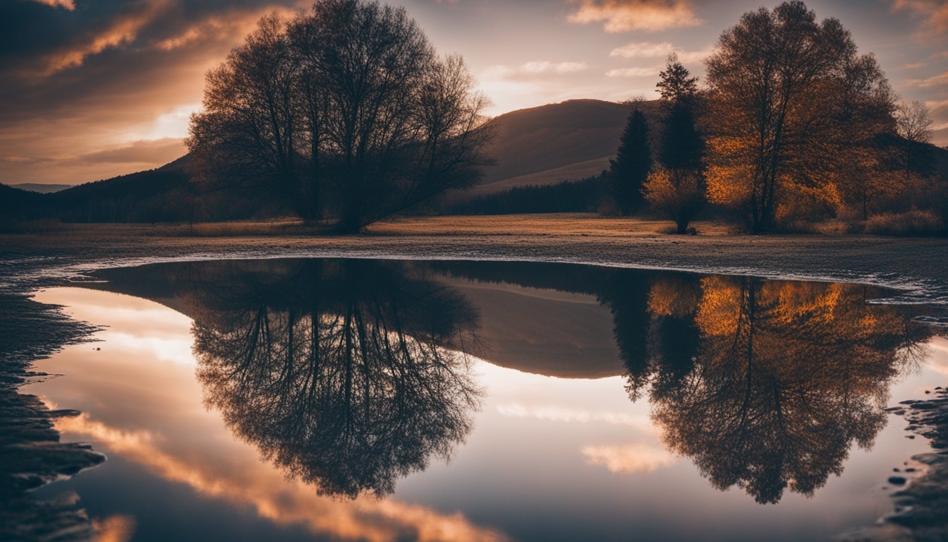 Reflection photography lets us create mirror effects that make our images stand out. By mastering this technique, we add depth and magic to our photos. Whether it’s a cityscape in a puddle or mountains in a lake, the possibilities are endless.